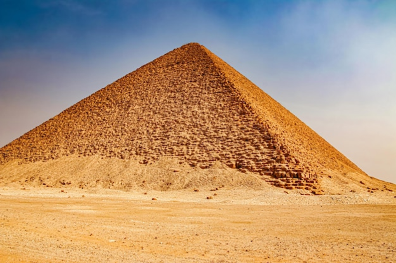 Третья пирамида Снорфу или «Красная пирамида», построенная в северной части Дашурского некрополя, изначально задумывалась как пирамида с гладкими гранями, сходящимися в одной точке. Угол наклона боковых граней пирамиды меньше, чем у пирамид более раннего периода – около 43 градусов, что делает ее более устойчивой. Высота пирамиды - около 100 м, длина сторон основания – до 220 м. Красноватый известняк, из которого сложена пирамида, придаёт ей характерный цвет. Причины строительства фараоном Снофру трёх пирамид до конца не ясны. Наиболее вероятно, что последняя пирамида была настоящей гробницей фараона, а две другие – ложными гробницами, кенотафами. АрхИстори в телеграмм