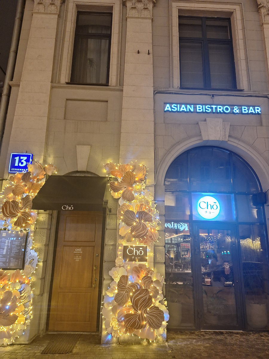 Пятничным вечером решила выбраться с подругой и посетить новое заведение Cho – Asian Bistro на мясницкой В заведении небольшое количество посадочных мест, поэтому советую бронировать стол заранее. Несмотря на довольно близкое расположение столиков и барной стойки между друг другом, в ресторане весьма уютно. В зале расположена барная стойка и открытая кухня, что позволяет наблюдать за процессом готовки. Ресторан специализируется на азиатской кухне. В начале мы выбрали: Коктейль Asian herbs и коктейль Lime Spritz Коктейли приятные и лёгкие, алкоголь несильно ощущается. Напитки имеют приятные освежающие нотки с кислинкой. На закуску мы выбрали: Хенд ролл аргентинская креветка, ментайко Роллы вкусные, очень красивая и аккуратная подача. Ролл хорошо сформирован и почти не рассыпается при употреблении. Салат из баклажан с томатами и кешью, в азиатской заправке. Салат вкусный. Хороший сбалансированный вкус за счет сладкого соуса со свежими томатами и обжаренными баклажанами. Гедза с камчатси