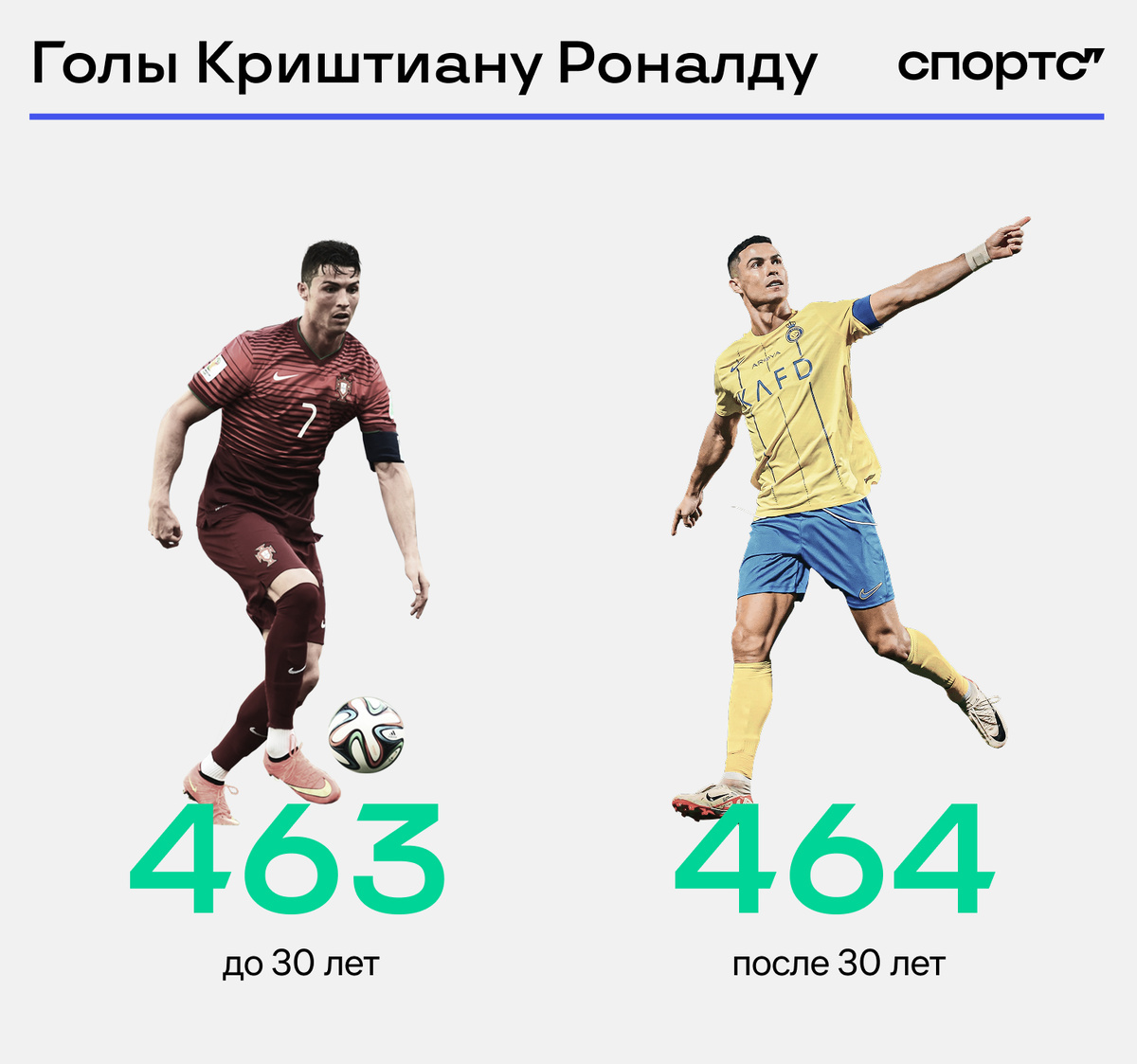 Факт дня: у Роналду больше голов после 30-летия, чем до – 464 против 463