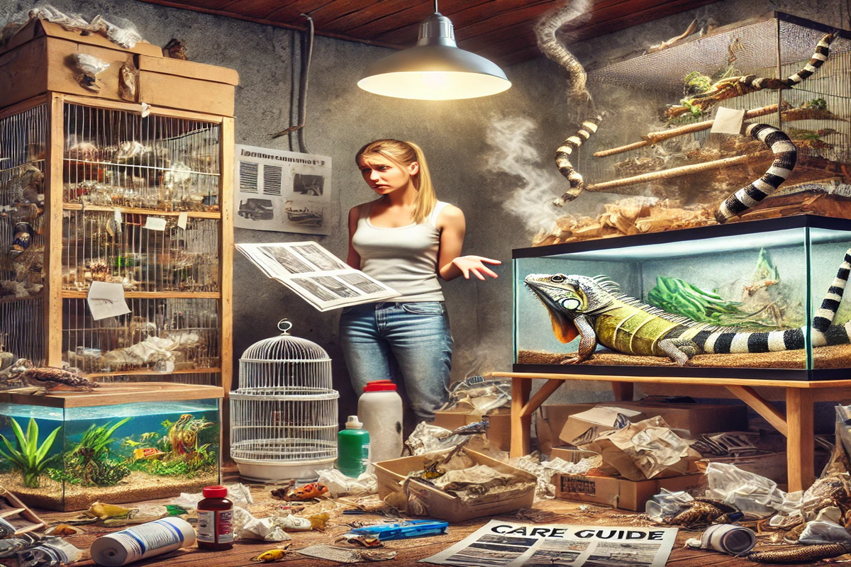В первой части мы разобрали такие ошибки, как неправильный выбор питомца, неподходящие условия содержания и неправильное кормление. Теперь разберём ещё несколько распространённых проблем, с которыми сталкиваются начинающие владельцы. 4. Пренебрежение контролем температуры и влажности Экзотические животные, особенно рептилии и амфибии, очень чувствительны к параметрам окружающей среды. Одна из частых ошибок – использование неподходящего обогрева или увлажнения. Например: • Установка некачественного термоковрика или лампы, из-за чего температура не достигает нужных значений. • Отсутствие термостатов и гигрометров – без них сложно контролировать климат в террариуме. • Использование неподходящих методов увлажнения – например, частое опрыскивание вместо нормального увлажнителя. Решение: перед покупкой питомца изучите его природную среду и обеспечьте стабильные условия, соответствующие его потребностям. 5. Игнорирование УФ-излучения Для большинства рептилий (особенно для черепах, аг