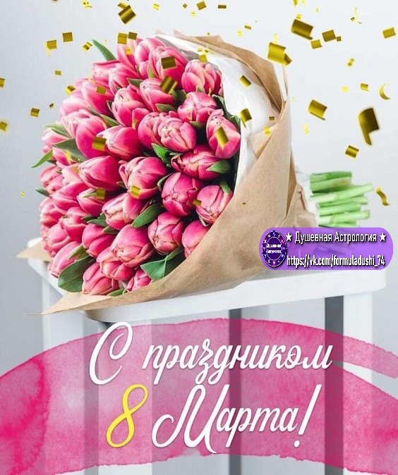 С Международным женским днем! В этот особенный день, когда весна пробуждает природу, пусть каждая звезда на вашем небосклоне светит ярче, а планеты благоприятствуют вашим стремлениям. Пусть Венера дарит вам любовь и гармонию, а Луна — нежность и заботу.