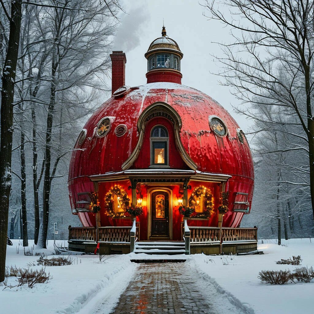 Скажите, вам в детстве не хотелось жить в каком-нибудь необычном доме? Например, в доме, который похож на ваше любимое животное или занятие. Наверное, было бы здорово: посмотрел на дом – и его хозяин весь как на ладони! Сразу понятно, кто бы жил в доме- собаке, доме-коте, и, скажем, доме-мяче. А что бы вы сказали, о людях, чей дом похож…на новогодний шарик?