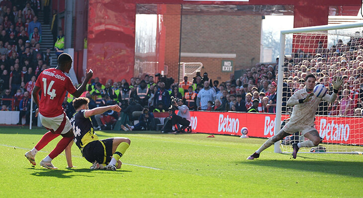 Но календарь кажется не очень сложным. В 28-м туре АПЛ «Манчестер Сити» уступил 0:1 в гостях «Ноттингем Форест» – в конце отличился Каллум Хадсон-Одои. Очень важный результат в борьбе за место в Лиге чемпионов. Эдерсон пропустил в ближний угол – и «Сити» проиграл «Сити» мог забить уже в начале – на 14-й минуте 14-й номер Нико Гонсалес грохнул в штангу ударом издали. Несколько моментов упустили, а в конце получили гол от хозяев и отыграться не смогли. На 83-й минуте Морган Гиббс-Уайт длинным пасом нашел на фланге Хадсона-Одои. Полузащитник «Форест» ворвался в штрафную, ушел от Йошко Гвардиола и точно пробил в ближний угол. Хадсон-Одои раньше забивал «Сити» всего однажды и тоже в конце, но за «Челси» и в проигранном матче (1:3). Сейчас, казалось, будет сложно поразить именно ближний угол с этой дистанции, тем более в нем находился Эдерсон. Но вратарь «Сити» как минимум не выручил. В конце Матео Ковачич заряжал с полукруга у штрафной «Форест», но не попал в створ. 0:1 – «Сити» и двух неде