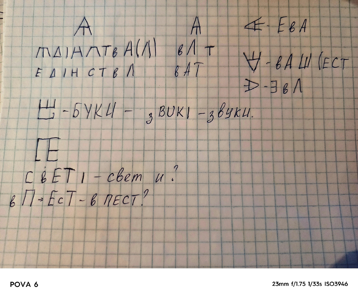 Магия буковОК. Буковка А в глаголице, Аз- Атом злата, Ева, Эва, Ваш, Ват, Единства- чего либа... В одной букве столько направлений. Буква В -веди...может ВВОД, тогда Ева-Эва -энергия ввода атома... Буковка Б- Буки...Кириллицей- Buk-i- з-вуки если читать по русски. Или ребус- Свет, в Пест? Или слово Буки как 3три вук- будет 3К А буква К означает качество и количество. ЗК чего либо. 3 звук или 3 буки )) Это первые две буквы, относятся к другому написанию глаголицы, а ее несколько вариантов. К слову буква К обозначается... к-Р-Е-Мль- количество реакций Е(энергии) мысли люда дверей? Ь и Ъ могут играть роль Ключа в дверь, в двери открыть закрыть...под вопросом. Открыть сделать творение люда- выпустить мысль твердую. Следующие буквы означают действия чего либо, например Глаголь как- глаз и голос, или направление вверх-вниз.