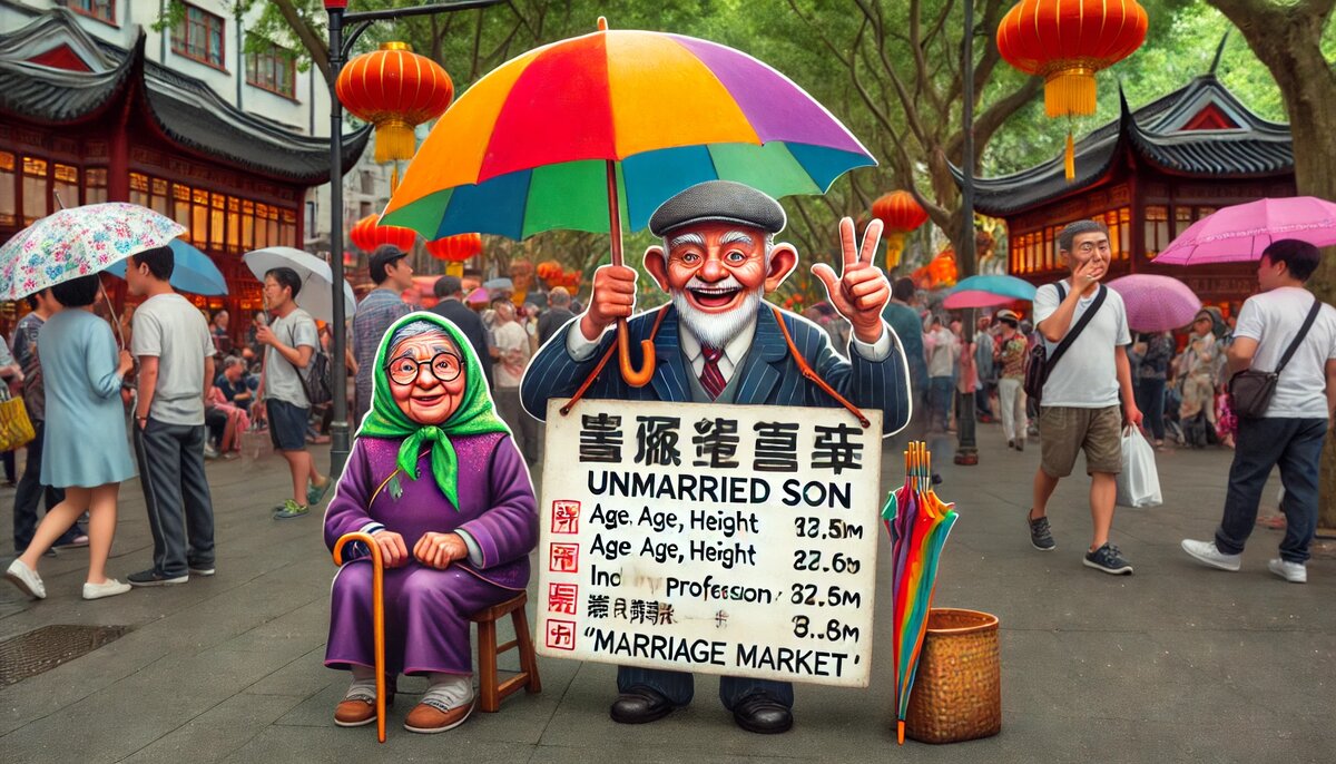 Я протиснулся ближе. На зонтиках и картонках — самодельные объявления: "Мужчина, 32 года, 178 см, собственная квартира 80 м², Шанхай, инженер, 50,000 юаней в месяц". Никаких фотографий. Никаких улыбок. Только сухие факты.