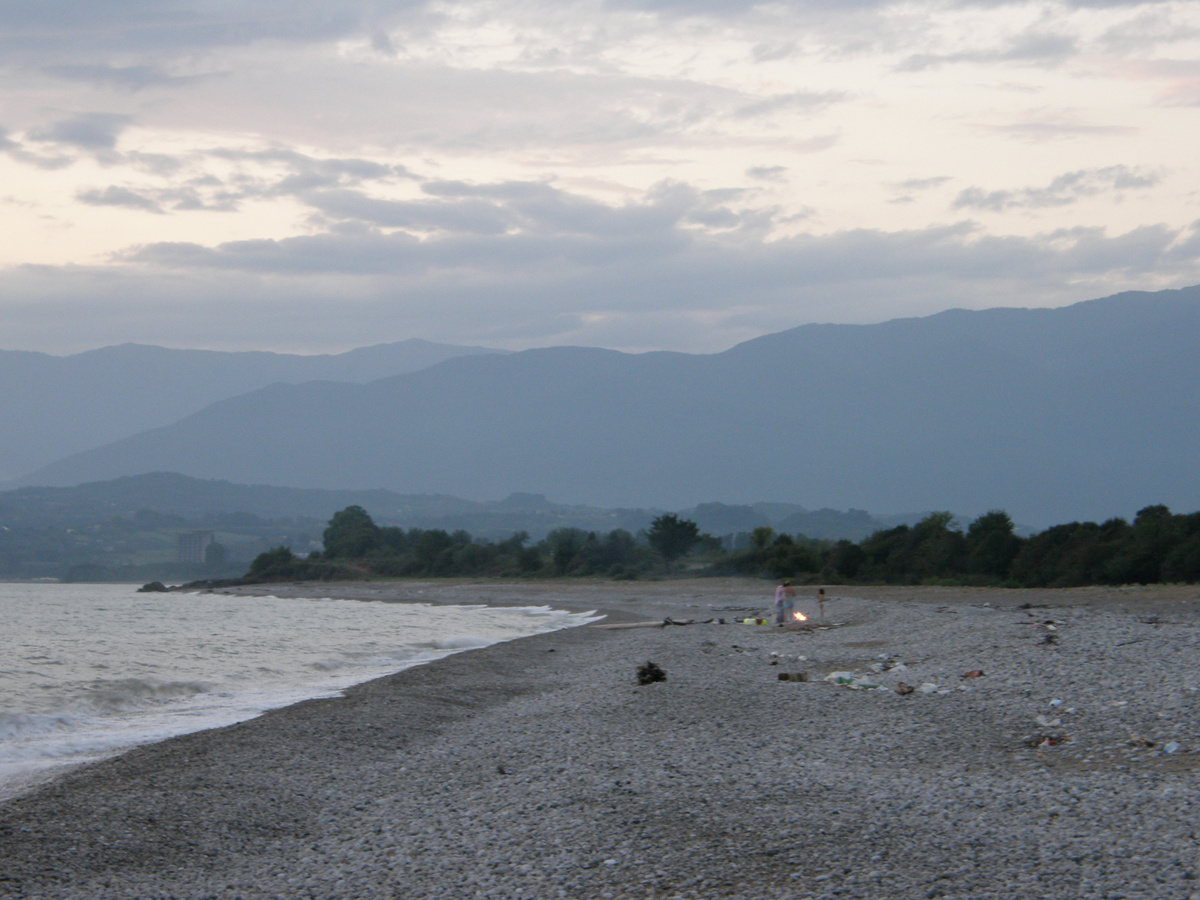 Конечно здесь отдыхали только автомобилисты. Редко кого заносило в такую даль от цивилизации и магазинов пешком. В Абхазии ситуация с общественным транспортом сложная. Гораздо проще увидеть на дороге корову, чем автобус. Мы были довольно легки на подъём, но поездка в магазин в Гудауту занимала пол дня. Нужно было дойти до трассы и остановки минут за 40, дождаться автобуса, - иногда около часа, купить продукты и вернуться назад с полными сумками.
