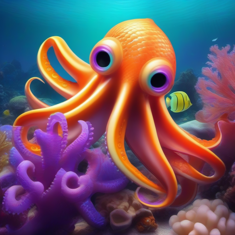 Рыбка оглянулась и увидела любопытного осьминога, который с интересом разглядывал её своими большими глазами.