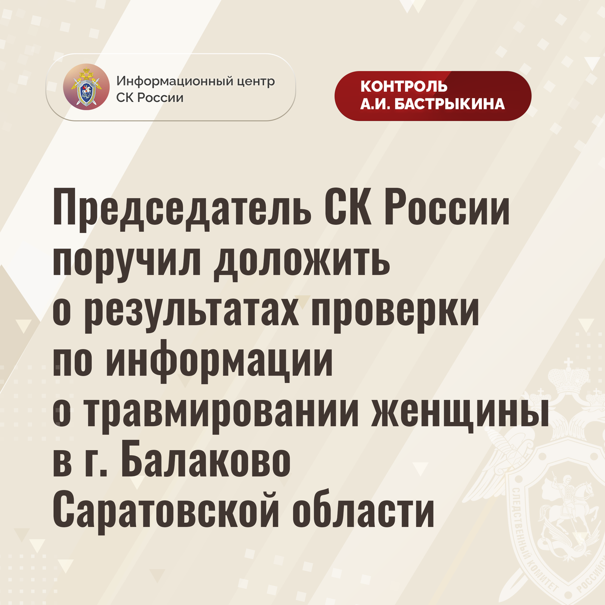 Председатель СК России поручил доложить о результатах проверки по информации о травмировании женщины в г. Балаково Саратовской области