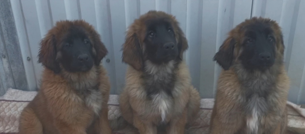 Девочки Леонбергеры, какие они ...Просили девочек отдельно показать, показываю .... Нора, Джина и Ли‘са (красный, розовый и оранжевый ошейники)...Почему я их так зову?...Нора(красный ошейник), а всё в норку тащит, прячет от всех игрушки... Я говорила что у Леонов матриархат, так вот Нора –Лидер, играя раскатывает парней, укладывая на лопатки...а они ее не обижают и поддаются ... Джина- подлиза, и дипломат. Она не таскает мальчиков за хвосты, не треплет за уши, но если начинается потасовка, при ее появлении она как то сразу и заканчивается и она меня выбрала... Вообще, она останется дома...Ли‘са, лиса Алиса, домовёнок рыжий и неугомонный (оранжевый ошейник), самая спортивная, самая ... везде самая первая, уже сейчас самая яркая... Все три девочки черноглазые... Каждая –звездочка, звезда...две девочки Нора и Ли‘са, ищут самых лучших мампап...
