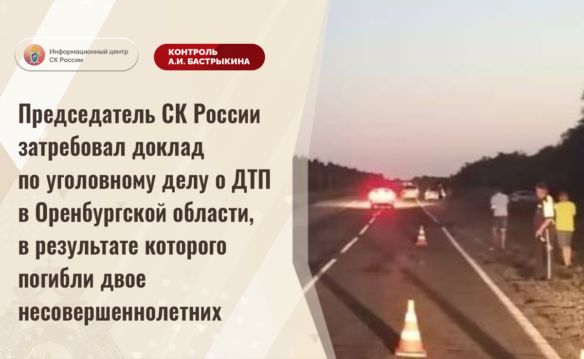 Председатель СК России затребовал доклад по уголовному делу о ДТП в Оренбургской области, в результате которого погибли двое несовершеннолетних