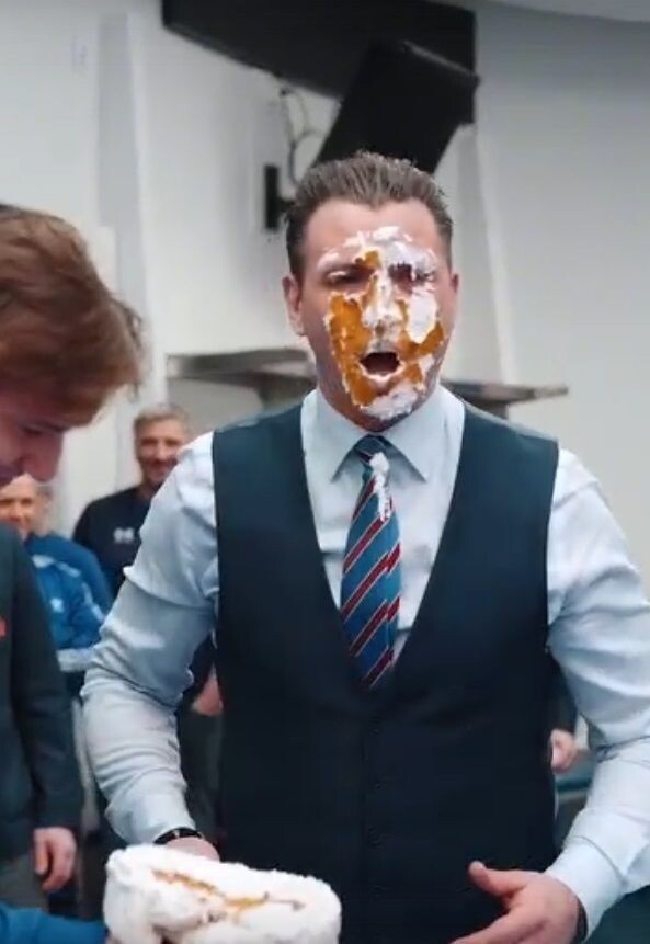 Появилось видео, как тренер СКА Роман Ротенберг получил тортом по лицу. В субботу состоялся матч петербургского СКА с «Металлургом», который завершился уверенной победой армейцев. Игра закончилась со счетом 4:2.