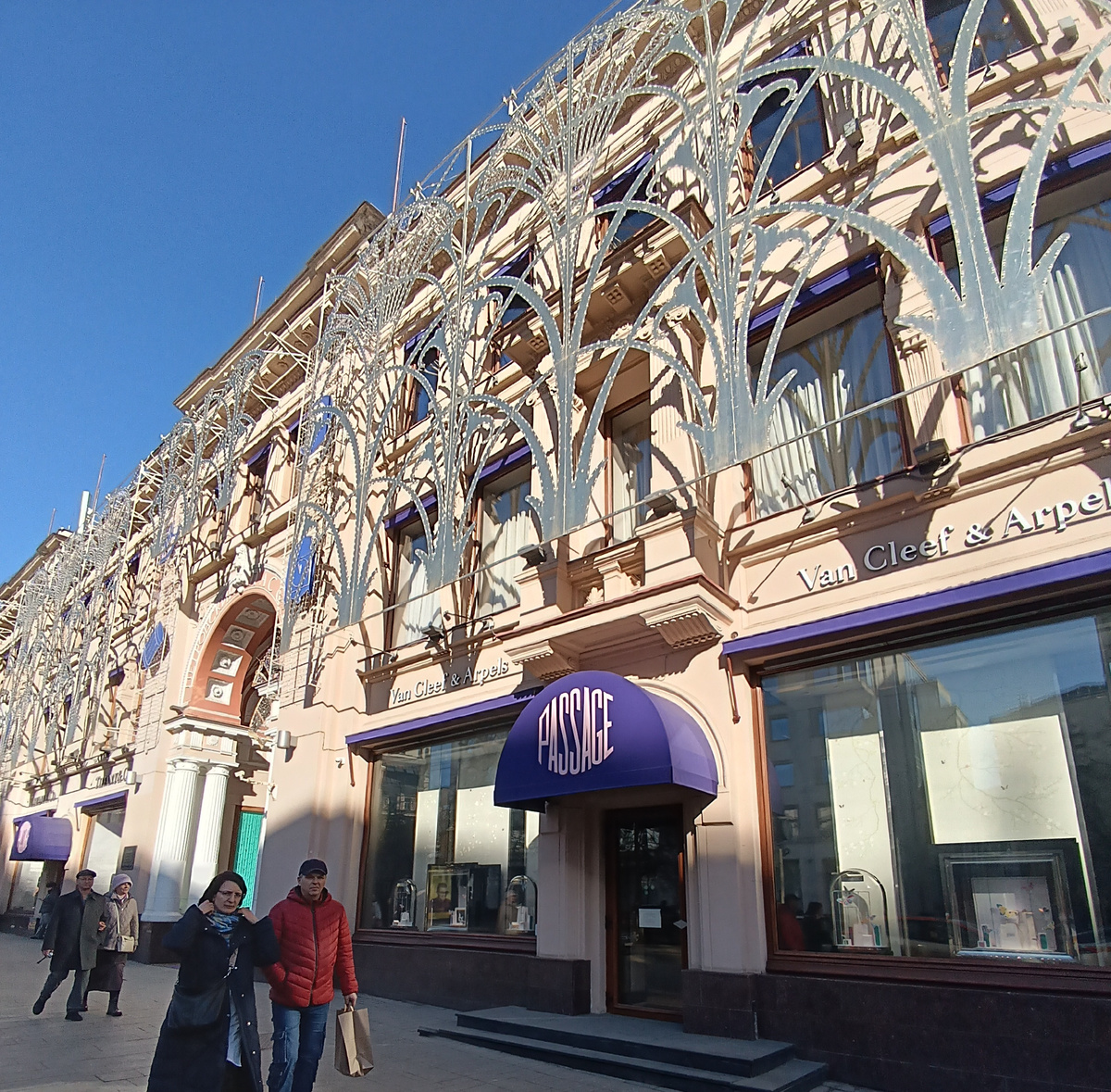 8 марта 2025 года Здравствуйте, друзья! Вообще-то в этот день я собиралась ломать стереотипы. То есть провести его дома, занимаясь хозяйственными делами. Праздник у меня уже случился неделю назад, в воскресенье мы идём в театр, можно и выходной себе устроить. Но утром в окно светило такое весеннее солнце, что моего хозяйственного запала хватило только на утро. И когда мне позвонила Лена (Искра) и пригласила присоединиться к ней и ещё одной Лене из нашей компании, чтобы посмотреть всё же выставку цветов в Петровском Пассаже, я собралась за 25 минут. Я бы и быстрее собралась, но стирка была запущена и хотелось всё же хотя бы это дело завершить. На улице была настоящая весна! Да ещё праздник! Кругом мужчины и женщины - все с цветами. Мне захотелось тоже идти домой с цветами, желательно получив их в подарок. Но это позже, а пока перед нами Петровский Пассаж, в недрах которого прячется та самая выставка цветов, которую мы в прошлый раз не обнаружили, просто потому, что она ещё не открылась.