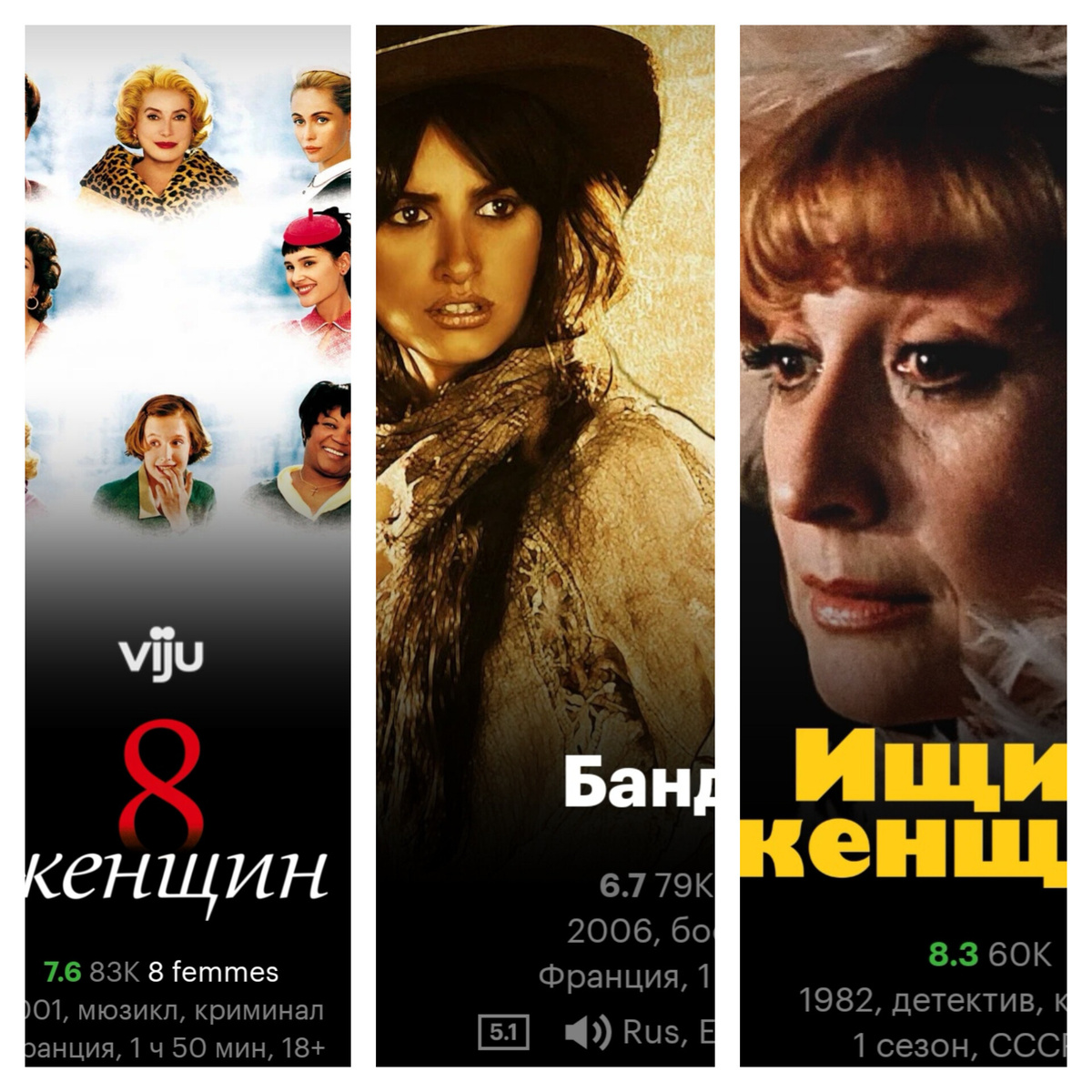 На этих выходных мы, конечно, поговорим о кино, где главную роль играют женщины. Французский детектив о том, как на Рождество в доме собирается семья, но хозяин дома убит, а 8 женщин близких ему оказываются под подозрением. Классика жанра с бесподобными Катрин Денёв и Фанни Ардан. Одна - аристократка из богатой семьи, другая - дочь фермера, у которого отняли землю. Не смотря на различия они объединятся, чтобы грабить банки и спасти землю простых фермеров от незаконного захвата. Веселая и легкая комедия с Сальмой Хайек и Пенелопой Круз. Бесподобный детектив-комедия про секретаря нотариальной конторы, которая видит человека с ножом в спине, но он мистически исчезает. Так был ли труп и куда он делся? Все это придётся выяснить испектору полиции, который окажется знакомым секретарши. Обожаю этот фильм и даже знаю многие фразы оттуда наизусть. Фильмов про женщин, конечно, очень много и это только капля в море. А вы смотрели эти фильмы? Делитесь в комментариях вашими любимыми фильмами