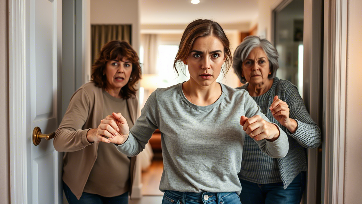 — Выход там, — спокойно произнесла Алёна, указывая на дверь и решительно подталкивая родственниц к прихожей.