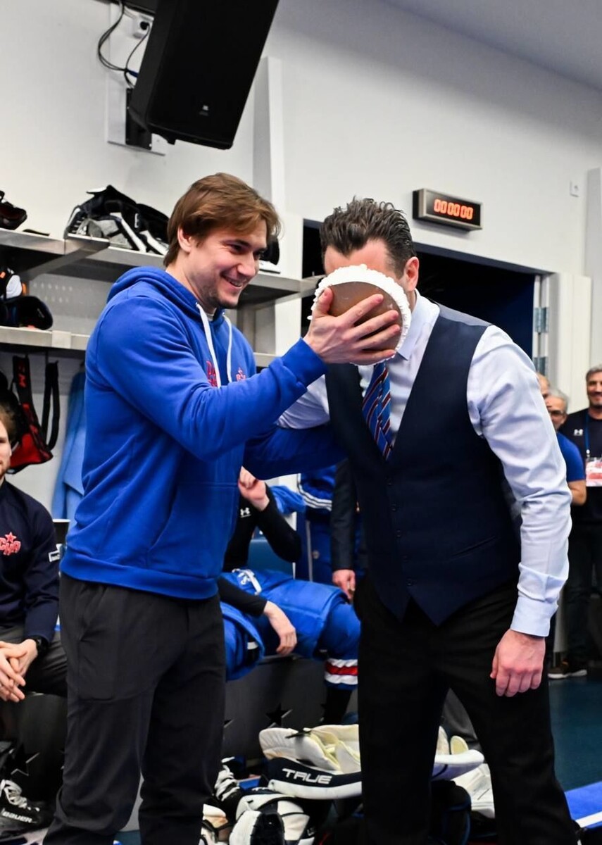 Игроки СКА в честь победы над «Металлургом» окунули Романа Ротенберга в торт