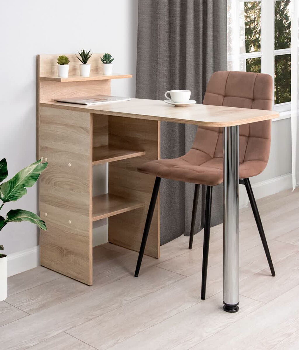 Начнем наш обзор с кухонного стола. Раскладной стол — это не просто элемент мебели; это настоящая находка для тех, кто ценит функциональность и экономию пространства. Он устанавливается к стене, есть полочки. Очень удобно для небольшой кухни. Ну мне кажется, что он достаточно универсальный, подойдет и для рабочей зоны.