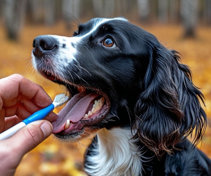 Гигиена полости рта у собак Существует разные способы поддержания - Для начала вам нужно научить собаку класть подбородок на вашу руку. - Держите открытую руку ладонью вверх перед мордой собаки немного ниже уровня подбородка. - В другой руке держите лакомство перед собакой чуть ниже ее носа. Когда ваша собака потянется за лакомством, медленно опустите руку с лакомством к вашей открытой ладони. Когда ваша собака положит подбородок на вашу открытую ладонь, отметьте, что она выполнила правильное поведение, сказав «да» или «хорошо», и дайте ей лакомство. Повторите это несколько раз, и как только ваша собака начнет делать это правильно, начните постепенно убирать лакомство, повторяя шаги с тем же движением, но без лакомства в вашей руке. Поощряйте ее лакомством, когда она кладет свой подбородок на вашу ладонь. Как только вы попрактикуетесь в этом, начните постепенно убирать движущуюся руку, перемещая ее все меньше и меньше, пока вы не сможете представить только свою ладонь,