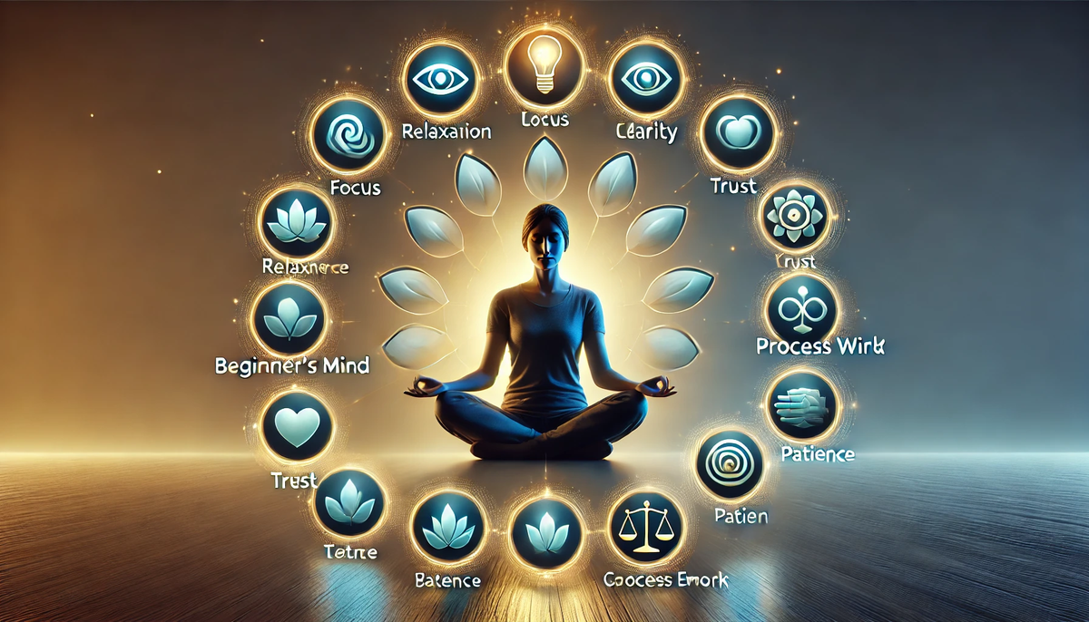 Навык ясности в контексте осознанности (mindfulness) связан с способностью чётко и объективно воспринимать свои мысли, чувства и происходящее вокруг, без искажений и оценок. Ясность помогает осознавать внутренние переживания, позволяет отделять важные и неважные мысли, а также помогает принимать более осознанные решения.