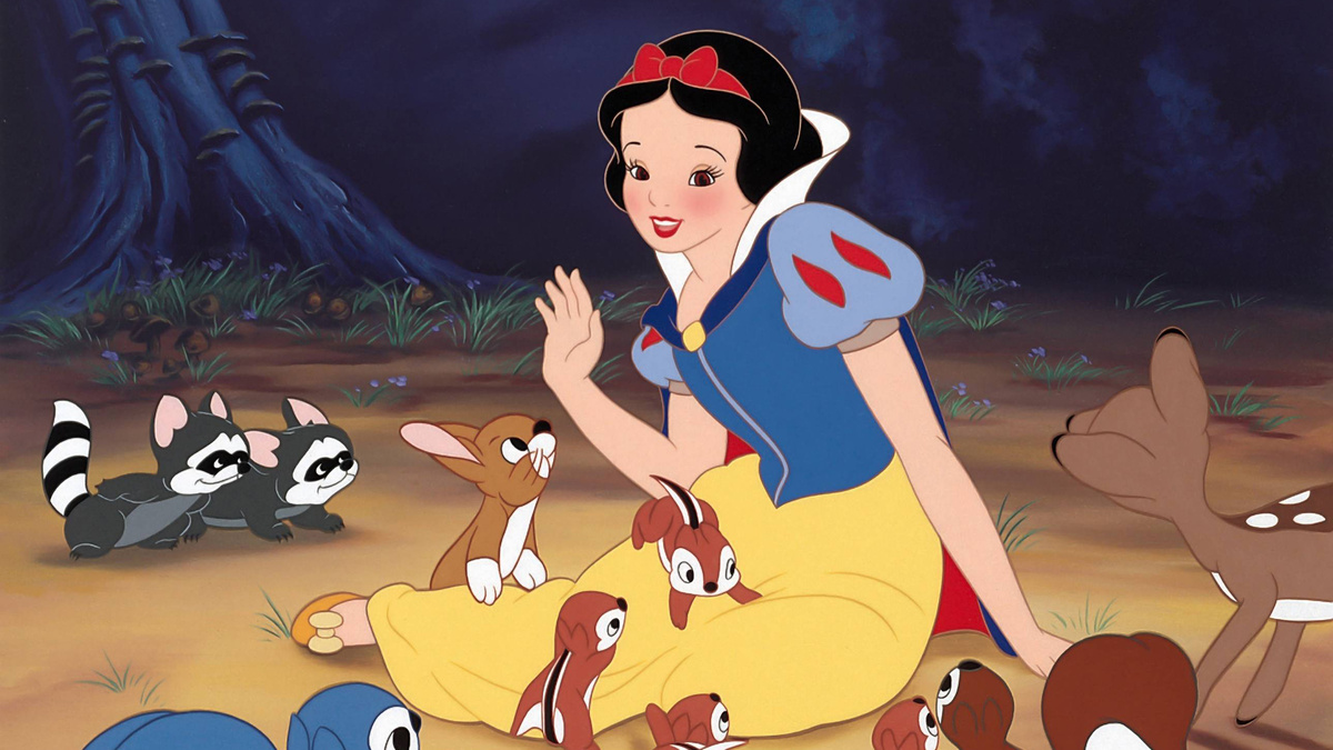 Белоснежка, ставшая первой диснеевской принцессой, во многом наследует женским персонажам классической литературы и немого кино. Она типичная «дева в беде», мечтающая о принце, который спасет ее и увезет в свой замок. Ее роль в сюжете пассивна. Героиня подчиняется чужим приказам, никогда всерьез не сердится и не выказывает ни малейших признаков недовольства другими людьми или обстоятельствами. Поселившись в доме у гномов, она с утра до вечера занимается их бытовым обслуживанием: готовит, стирает, убирает. На желании угодить обитателям домика ее, между прочим, и ловит обернувшаяся торговкой королева. Узнав, что Белоснежка печет пирог с крыжовником, она протягивает ей отравленное яблоко со словами: «Это от яблочного пирога у мужчин текут слюнки».
