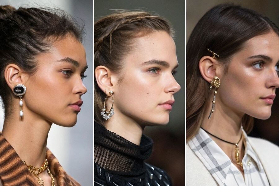 - Прямые волосы: Асимметричные проколы добавят динамики. Выбирайте серьги, которые привлекут внимание к волосам.