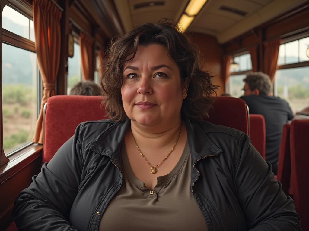 Анна вошла в купе и остановилась как вкопанная: её место заняла крупная дама с ярко-рыжими волосами, уложенными в высокий пучок. На ней был зелёный сарафан с узором из ромашек, который с трудом сдерживал её пышные формы. Дама с наслаждением уплетала булочку с маком, роняя крошки на широкую юбку. Рядом громоздились сумки с едой — казалось, она запаслась провизией не на короткую поездку, а на путешествие через всю страну, от Урала до Камчатки.