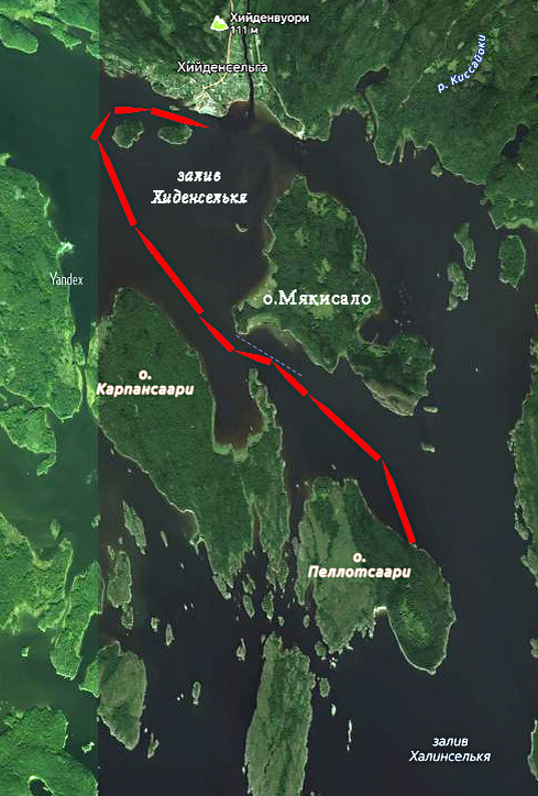 В предыдущей статье завершился наш визит на остров Пеллотсаари в северно-восточной части Ладожских шхер. После пешеходной прогулки по экологической тропе на острове и возвращения на теплоход, продолжим путешествие в северном направлении к следующему пункту в нашем виртуальном круизе – посёлку Хийденсельге (до него немногим больше 11 километров).Переход будем осуществлять из залива Халинселькя в залив Хиденселькя по проливу между островами Карпансаари (он слева от судового хода) и Мякисало. У причала Пеллотсаари своих пассажиров ожидает четырёхпалубный «Нижний Новгород». Через несколько минут мы смотрим на причал уже с палубы теплохода. Прощальный взгляд на причал, так он выглядел в 2014 году – в тот год от Пеллотсаари мы уходили на юг, на Валаам. В 2024 году наш маршрут пролегал мимо Пеллотсаари дальше на север, к деревне Хийденсельге. В это время экскурсии на остров, похоже, уже не проводились. На снимке 2024 года причала как такового нет, остались только три деревянных помоста, к кот