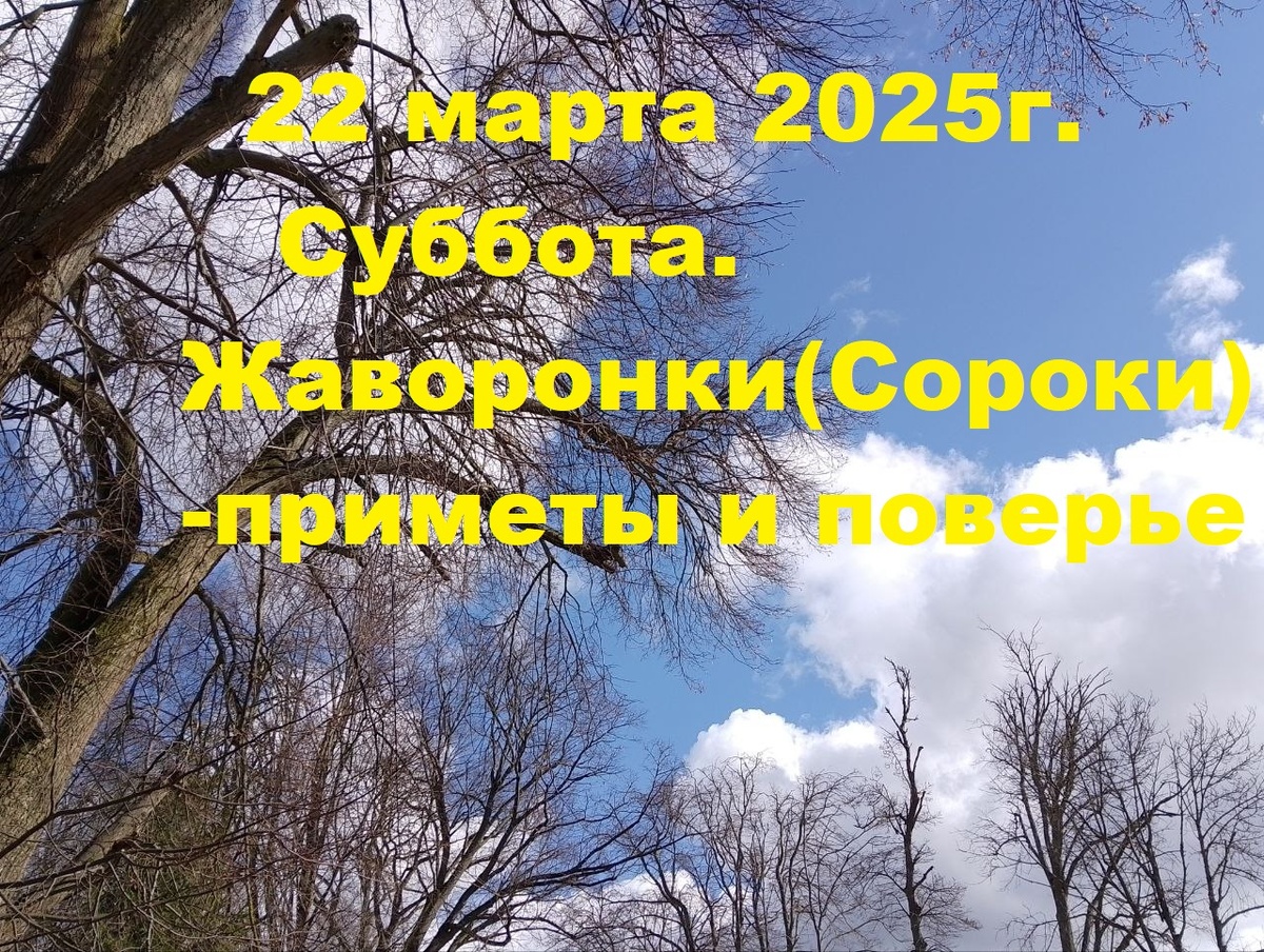 22 марта 2025 г. Суббота. Жаворонки(Сороки). Народные приметы, прогнозы и поверья .Число дня 7.