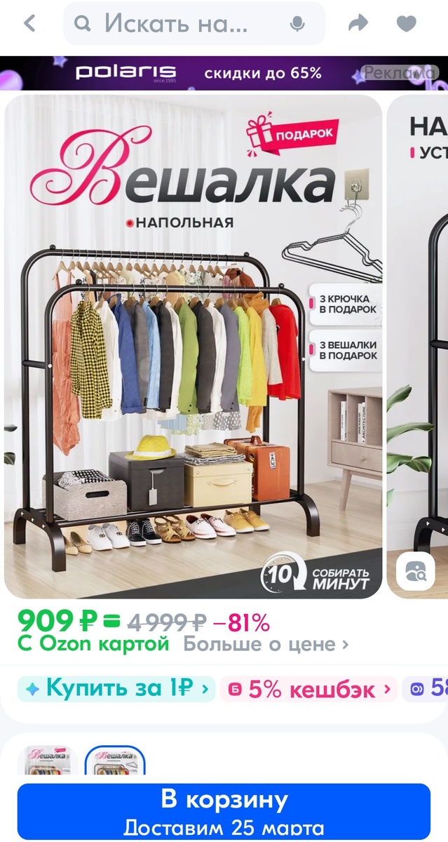 Поэтому, я решила переформатировать хранение. И купила вот такую вешалку для вещей.