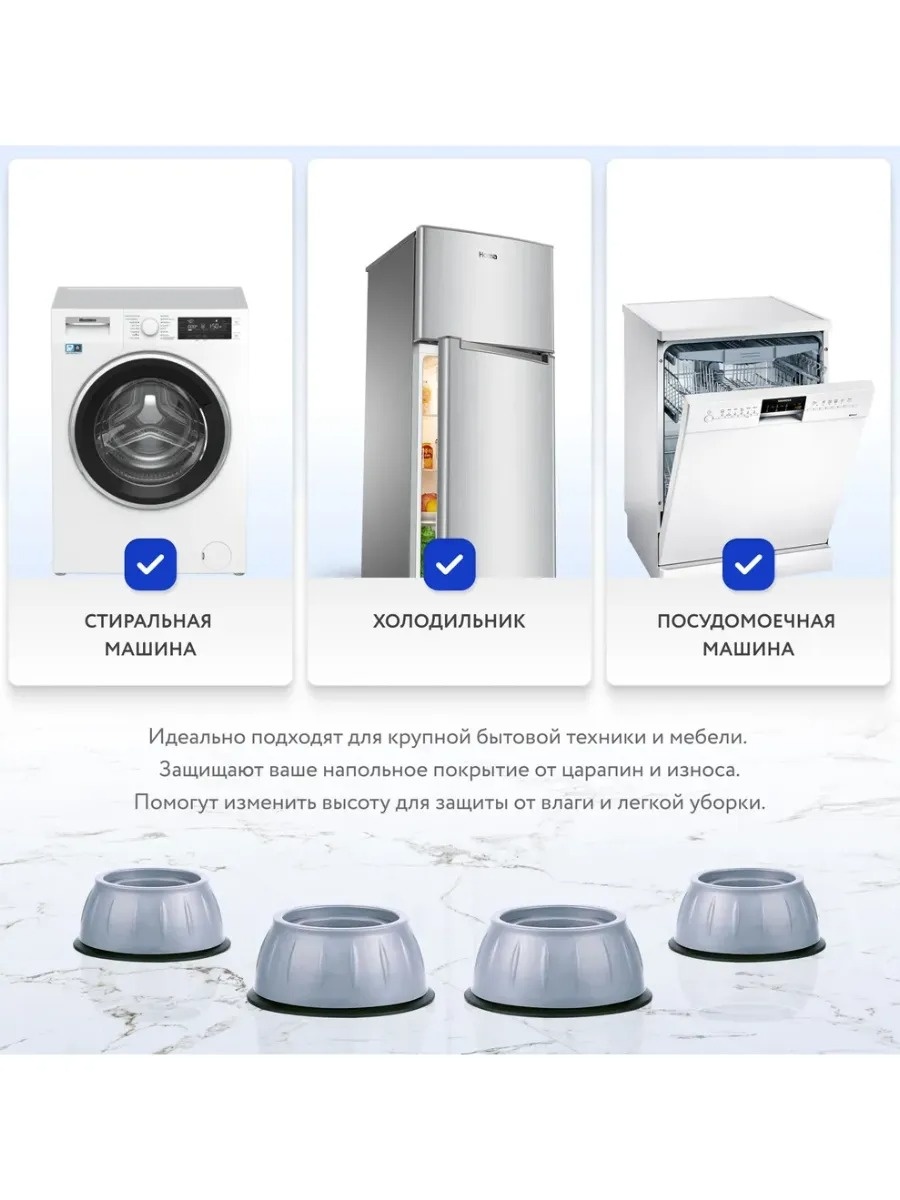 Вы устали от шума и вибрации, которые издают ваши стиральные машины, холодильники или другие бытовые приборы? Антивибрационные подставки – это то, что вам нужно! Этот набор из четырех подставок поможет вам снизить уровень шума, защитить пол и продлить срок службы вашей техники. Задумывались ли вы, сколько вреда может нанести вибрация на ваш пол и приборы? - Материалы изготовления: Подставки выполнены из прочного, антискользящего материала, который эффективно поглощает вибрацию.