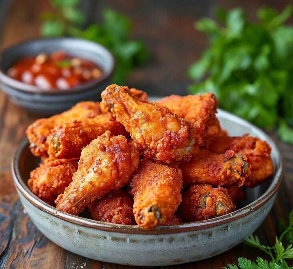 Хрустящие куриные крылья, запечённые в духовке 🔪Состав: - Куриные крылья - 1 кг. - Паприка, соль - по вкусу - Разрыхлитель - 2 ч. л. - Мед - 1/3 ст. - Уксус - 1 ст. л. - Острый соус - 4 ст. л. - Соевый соус - 5 ст. л. 📙Рецепт: 1. Перед началом приготовления крылья промойте, обсушите и разрубите по суставу. Кончики крыльев удалите. 2. Смешайте соль с паприкой и разрыхлителем, а затем высыпьте всё на курятину. 3. Распределите крылья на пергаменте, а сам лист положите на решётку для запекания. 4. Поставьте решётку на противень и готовьте курицу в разогретой до 210 градусов духовке 20 минут с одной стороны, а затем ещё 10 — с другой. 5. При желании вы можете полить курицу глазурью. Она готовится за считаные минуты. Соедините мёд с уксусом, острым и соевым соусом. 6. Вылейте глазурь поверх крыльев и перемешайте. Подавайте горячими. #крылышки #горячееблюдо #еда
