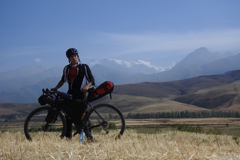Начинаю выбираться из города и уже с самого Бишкека, моя дорога начинает набирать вверх.Выезд из города, скажу вам, подобна тому, будто ракета прорывается через плотные слои атмосферы,борясь с гравитацией. Машины потоком мчатся над ухом, пыль,шум. Дорогу приходиться мониторить с предельной внимательностью. Когда я покинул орбиту города, дорога стала спокойнее. Двигаюсь вверх, впечатляясь горной стеной. В селе местный дед сказал мне, что в горах очень холодно,что не добавляет мне радости.У меня начинает уже болеть голова и начинают проявляться признаки горной болезни.Я двигаюсь к перевалу Кегети, но к этому перевалу я еду не по федеральной трассе, а другой дорогой, через Кой-Таш. На Кой-Таш сворачиваю на дорогу до Кызыл-Арык и тут машины пропадают. Я еду пока еще по асфальту, вдоль величественных гор. Желтая, выжженная солнцем трава,синее небо, редкие деревца вдоль дорогие и снежные горы.Тут уже заметнее холоднее,одеваю футболку под джерси. В какой то момент, мой обед в Бишкеке перестал мне давать энергию и я вяло плетусь в очередной подъем,одно радует, что нет машин. Доезжаю до небольшого села и в павильоне покупаю шаурму с настоящей, не православной кока-колой.
