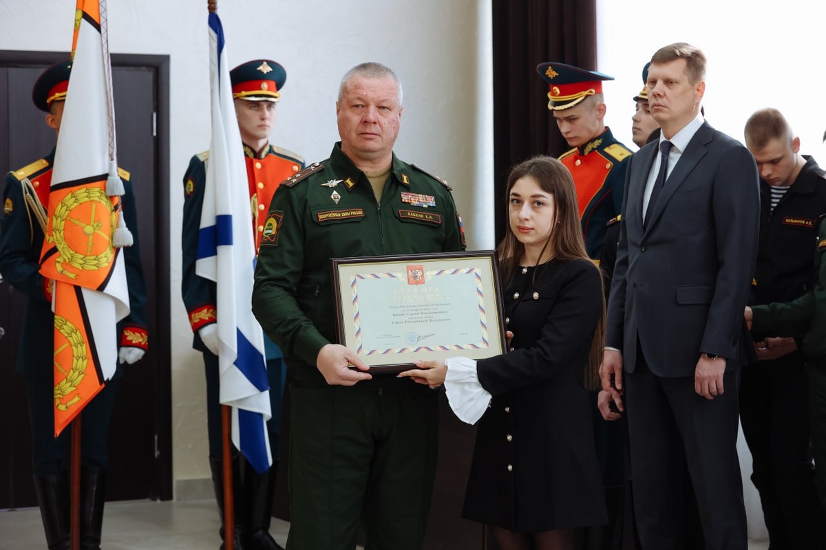 Звезду Героя России передали супруге погибшего выпускника ДВОКУ