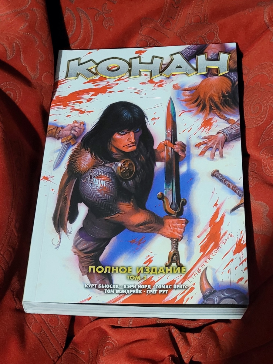 Свои размышления о Конане я иногда рассказывала друзьям и семье. В итоге на восьмое марта я получила не стандартные цветы-духи, а цветы и сборник комиксов. Какое же чудесное издание, где художники умеют в реализм и фантастику. Пока еще не успела полностью прочитать, но насмотрелась на иллюстрации. А через день мне заказали второй том. Чуть позже поделюсь впечатлениями и о нем.