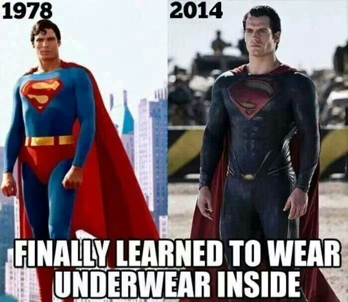 2) Продолжим темой менее серьёзной, касающейся традиционного образа супергероя. Имеется ввиду конечно же длинный плащ, разного рода маски и трусы поверх трико, что периодически смотрится нелепо. И нет, причиной для такого не является попытка скрыть ситуации, в которых наши герои опорожняются от страха.