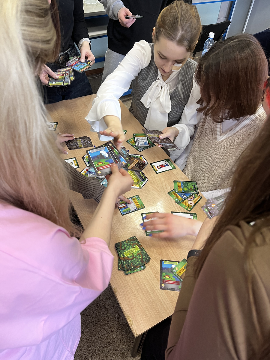 государственном университете геосистем и технологий, состоялся турнир по настольной игре «Хранители Земли». Настольная игра «Хранители Земли» -– это кооперативная игра. В ней участники частники не соревнуются друг с другом, а объединяются, чтобы спасти землю от экологической катастрофы. Умение договариваться, просчитывать последствия своих действий – все это очень важно в этой игре. Студентам необходимо было активно взаимодействовать между собой, применять свои суперспособности, обмениваться мнениями, сотрудничать и разрабатывать стратегии, чтобы спасти мир от катастрофы. В этой игре нет одного победителя участники действуют сообща. Все остальное – фишки, карточки – элемент везения. В игре есть сложные задания и неожиданные повороты – как в любой другой игре. В игре приняли участие студенты-экологи 4 курса обучающиеся по направлению «Экология и природопользование». В ходе игры участники решали экологические проблемы, очищали