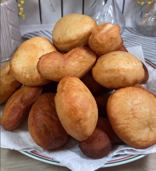 🧾Ингредиенты: ▫️500 г муки ▫️250 мл теплого молока ▫️8 г сухих дрожжей ▫️2 ст.л. растительного масла ▫️3 ст.л. сахара ▫️2 ст.л. сметаны ▫️1,5 ч.л. соли ▫️Растительное масло для жарки Приготовление: В теплое молоко (не горячее, около 35-37°C) добавьте сухие дрожжи, сахар и пару столовых ложек муки. Перемешайте до растворения дрожжей. Добавьте сметану, растительное масло, соль и хорошо перемешайте. Оставьте опару в теплом месте на 15-20 минут, чтобы дрожжи активировались, и смесь начала пузыриться. В опару постепенно всыпьте муку, постоянно помешивая. Замесите мягкое, эластичное тесто. Оно не должно быть слишком крутым, но и не липнуть к рукам. Накройте тесто пищевой пленкой или чистым полотенцем и оставьте в теплом месте на 1 час для подъема. После первого подъема обомните тесто руками, смазанными растительным маслом, чтобы оно не прилипало. Снова накройте тесто и оставьте в теплом месте еще на 30-40 минут для повторного подъема. Подошедшее тесто слегка обомните и раскатайте скалкой на