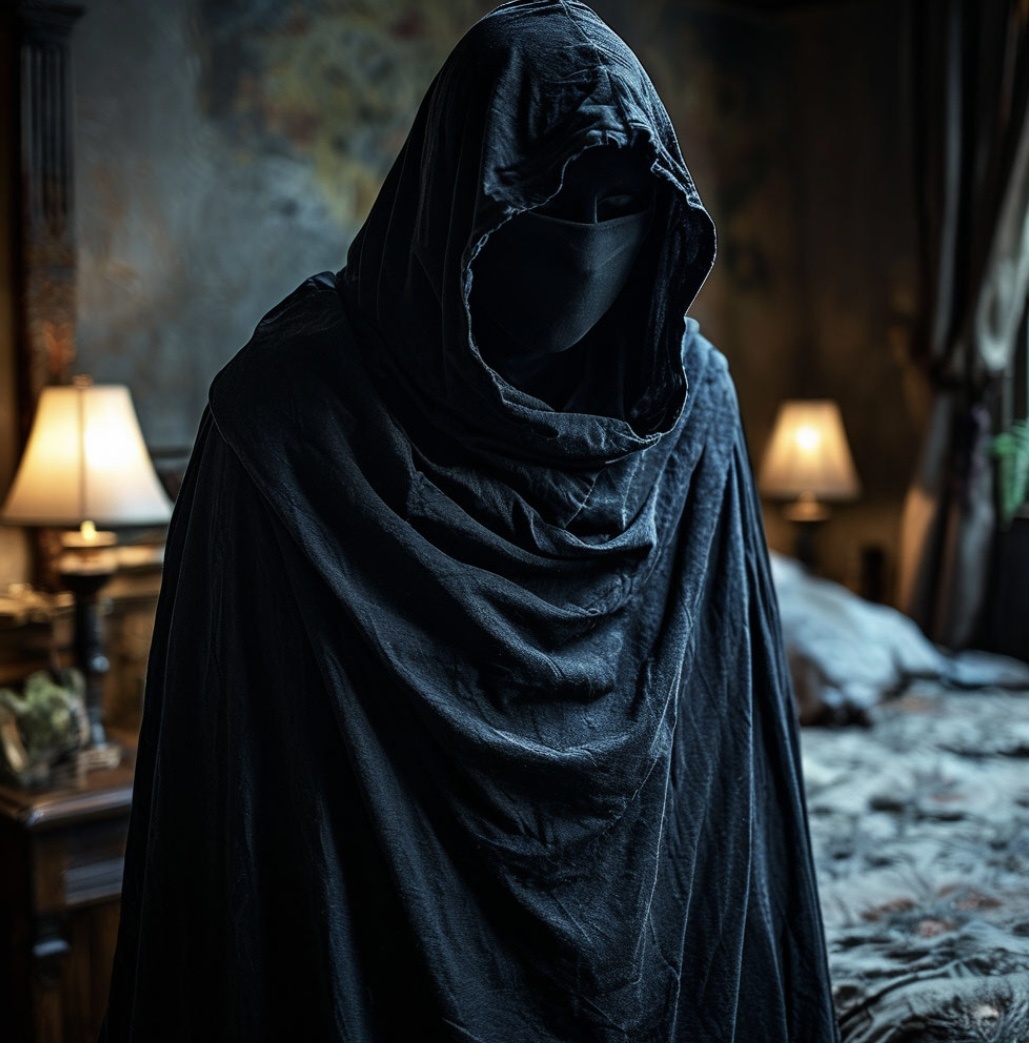 В полумраке комнаты маячила высокая фигура, окутанная чёрным плащом и капюшоном. Сердце бешено заколотилось.