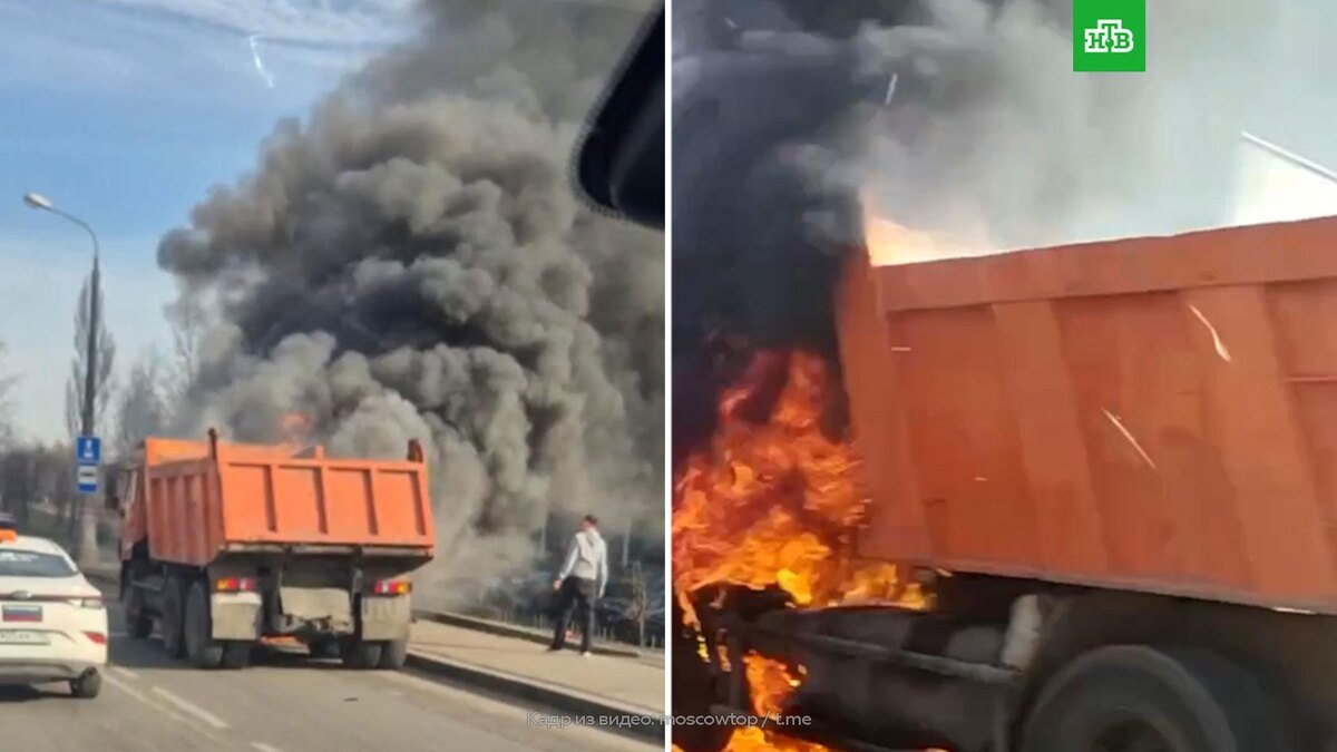 [ Смотреть видео на сайте НТВ ] В Чертанове загорелся грузовик, движение затруднено. Грузовой автомобиль загорелся в районе дома №1 по улице Подольских Курсантов в Москве. Движение транспорта ограничено, сообщили в столичной Госавтоинспекции. Судя по кадрам, которые публикуют в телеграм-каналах, на дороге загорелся «КамАЗ» коммунальных служб. Кабина машины выгорела полностью. По материалам: телеграм-канал «Госавтоинспекция Москвы». [ Смотреть видео на сайте НТВ ]