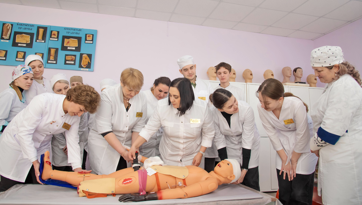 Все три наставника – выпускники местного колледжа, которые успели поработать в практической медицине. Они могли бы найти себе работу с более высокой зарплатой. Однако предпочитают работать со студентами. Альбина Фадеева, например, читает будущим фельдшерам лекции по педиатрии.