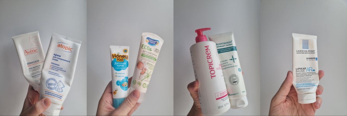 Для атопической кожи: Emolium, Mustela Stelatopia, Topicrem, Avene Xeracalm, Atopic, La Roche-Posay Lipikar.