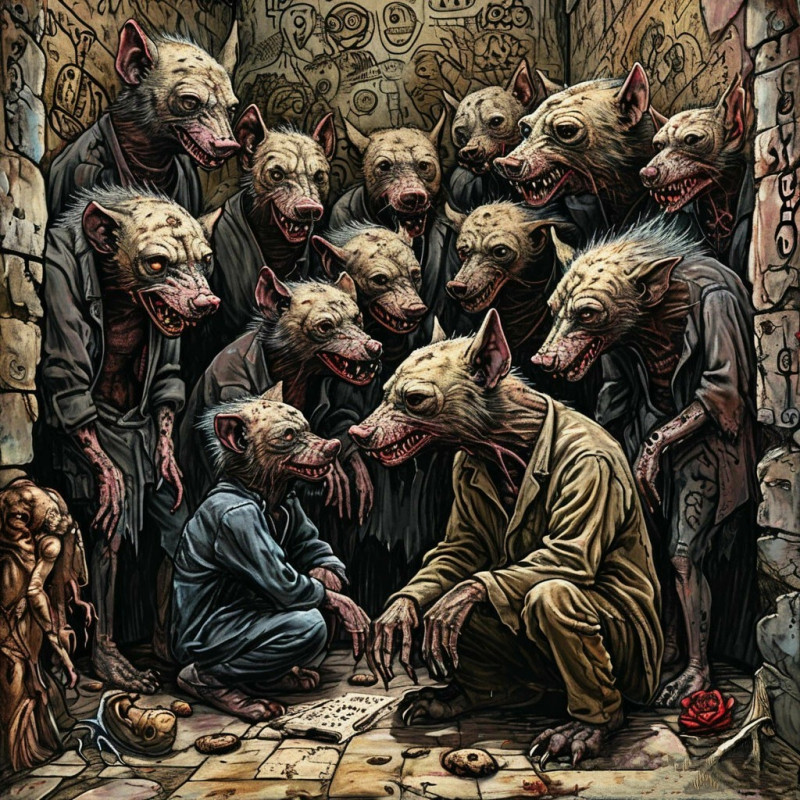 Я наблюдаю, как входят сквозь стены Люди-шакалы и люди-гиены. Люди-гиены ведут разговоры, В черных тетрадях рисуют узоры. Их посещают чудовища ада, Дети гниения, дети распада, Дети немертвых, дети неживших, Жуткие дети покойников бывших. В комнату входят, влетают, садятся, Плавают в воздухе, стонут, роятся, Лезут по шторам, ползут по обоям, По потолку надвигаются строем. Люди встают, поправляют одежды, Пьют самогон за остатки надежды, Ловят пришельцев, кладут штабелями, Прыгают в окна и машут руками. Утренний дворник в зелёных перчатках Стирает с асфальта их отпечатки, Курит сигарку, читает газету, Где напечатали сказочку эту. Автор: В. Пылаев Источник: https://litclubbs.ru/articles/63993-delirii.html Понравилось? У вас есть возможность поддержать клуб. Подписывайтесь, ставьте лайк и комментируйте! Оформите Премиум-подписку и помогите развитию Бумажного Слона.
