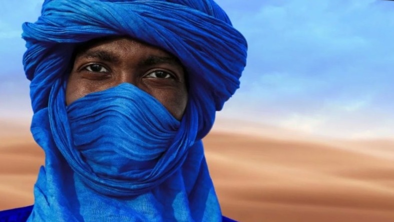 Тагельмуст — это 4 метра ткани и около 3,5 кг веса. Он окрашен натуральным индиго, и от постоянного ношения кожа становится синеватой. Так появились «синие люди пустыни».
