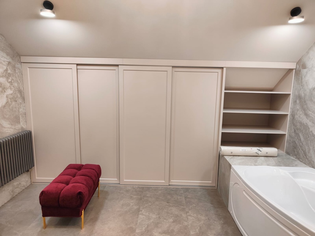 Мансардное пространство – это всегда вызов для хранения вещей. Скошенные стены, нестандартные углы, ограниченная высота – всё это усложняет подбор готовой мебели. Но мы знаем решение! 🚪 Раздвижные двери – идеальный вариант для экономии пространства и удобного доступа к вещам.