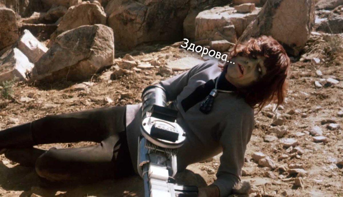 Laserblast (2.9) Фильм начинается с того, как по пустыне шарахается какой-то стройный мужик, напоминающий типичного голубка из английской глэм-рок группы. Примечательно, что у парня на руке надета какая-то футуристичная пушка, а на его шее болтается подвеска грушевидной формы. Как она работает и куда вставляется, думаю, расскажут дальше. Довольно быстро стало ясно, что загадочный чувачок с пушкой лицом напоминает зомби. Судя по движениям и взгляду, паренёк невменяем совсем и может кому-то навредить. И как же хорошо, что угомонить странного типа прилетели пришельцы из космоса, напоминающие черепах без панцирей. Эти странные ребятишки извне высадились с корабля и вступили в контакт с вооруженным зомбачом. Контакт, разумеется, был незащищенный. Понимаю, это очевидно, но всё же. По итогу контакта зомбик с пушкой в упор не сумел расстрелять пришельцев и получил в ответ несовместимую с жизнью дозу излучения из бластера одного из инопланетян. Всего за несколько секунд от зомбаря остался лишь