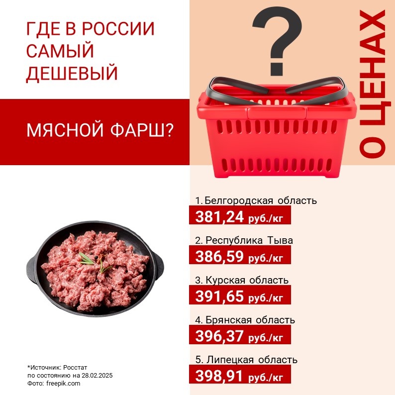 В «Центре Агроаналитики» составлен рейтинг субъектов страны с самыми низкими ценами на мясной фарш, а также говяжью и свиную печень. В обоих рейтингах доступности оказалась Курская область ЦФО. По стоимости мясного фарша в топ-5 регионов вошли и другие области ЦФО: Белгородская, Брянская, Липецкая, а также Республика Тыва СФО. Что касается говяжьей и свиной печени, то наиболее выгодные цены на нее, кроме Курского региона, зафиксированы в Псковской области СЗФО, Карачаево-Черкесии и Чечне СКФО, Чувашии ПФО.