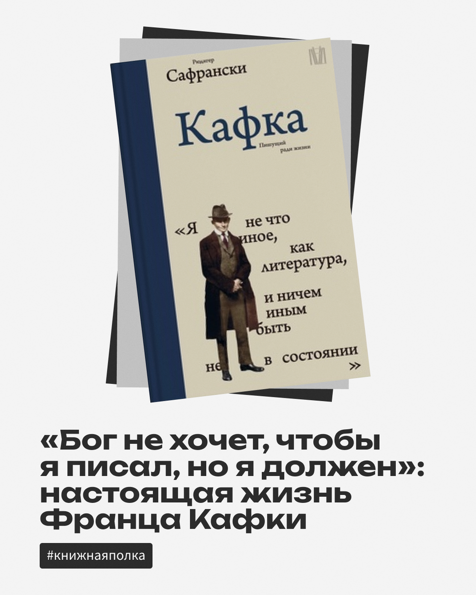 «Кафка в России — больше, чем Кафка где-либо еще. Для русского читателя это не только один из главных писателей мировой литературы, который повлиял на всех ключевых авторов ХХ века, от Альбера Камю до Харуки Мураками, не просто автор, по книгам которого снимают фильмы, ставят спектакли, оперы, балеты и даже делают компьютерные игры. В России Кафка — это единица измерения трагического абсурда, который является естественным фоном русской жизни. Иногда мы даже испытываем почти гордость за то, что отечественный абсурд обгоняет самые мрачные кафкианские образы». С этих слов начинает свое предисловие к книге философа и биографа Рюдигера Сафрански «Кафка. Пишущий ради жизни» (выйдет в марте в издательском проекте «Лед») ее научный редактор Максим Жук. В этой книге, по словам старшего редактора издательского проекта «Лед» Алины Климкиной, Сафрански исследует, как человек может разрываться между обычной обывательской жизнью и жизнью писателя, для которого творчество — не просто увлечение, а э