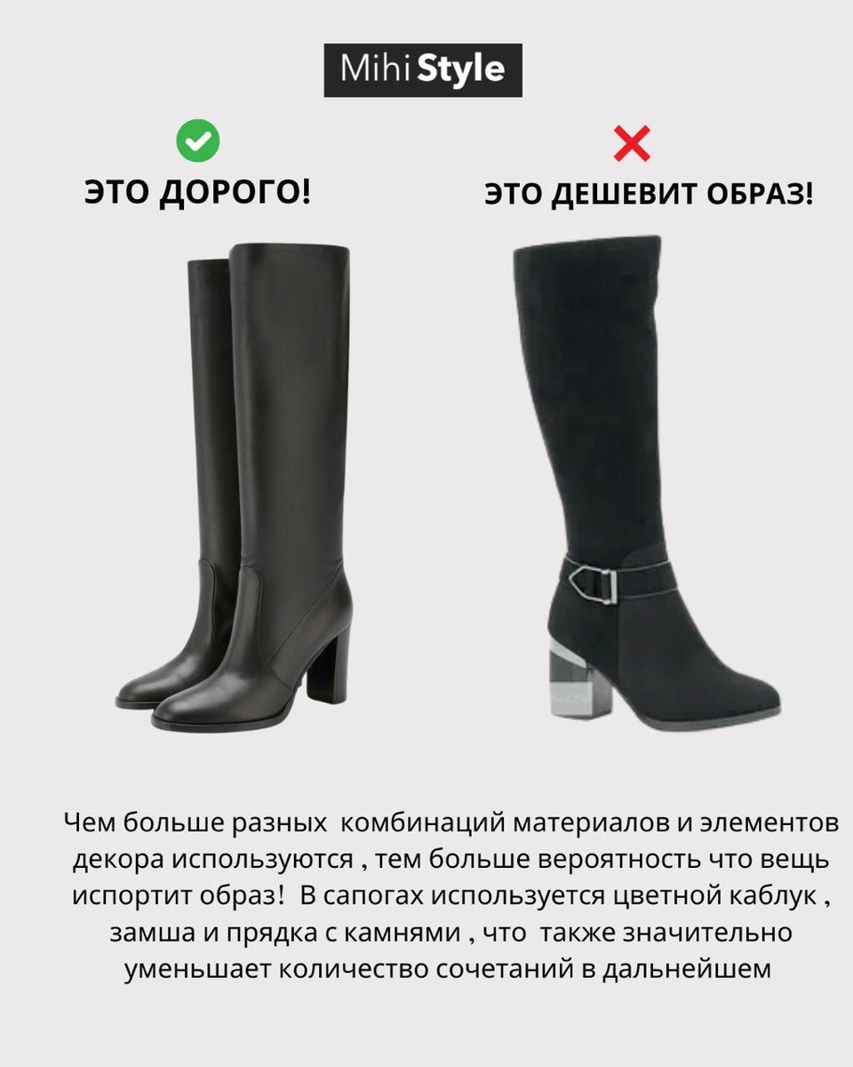 Привет, наши дорогие читатели! Мы снова с вами, чтобы поговорить о том, как маленькие детали могут повлиять на ваш образ. Помните нашу первую статью о том, что может "удешевить" ваш лук? Сегодня мы подготовили продолжение — "Эти детали будут дешевить образ: часть 2". Мы снова будем разбирать нюансы, которые могут испортить даже самый продуманный наряд. Готовы? Тогда поехали! Обувь — это важная часть образа, и здесь важно не переборщить. Сапоги с декором в виде пряжек, страз или других "изюминок" могут сделать ваш образ дешевым. Вместо этого выбирайте лаконичные модели из гладкой матовой кожи. Такие сапоги выглядят стильно, дорого и универсально. Как бы красиво ни выглядела вещь на вешалке, если она плохо сидит на вас, это сразу бросается в глаза. Особенно это касается брюк: если они плохо сидят в зоне паха, это не только неудобно, но и портит весь образ. Всегда примеряйте вещи перед покупкой и обращайте внимание на посадку. Джинсы — это база любого гардероба, но не все