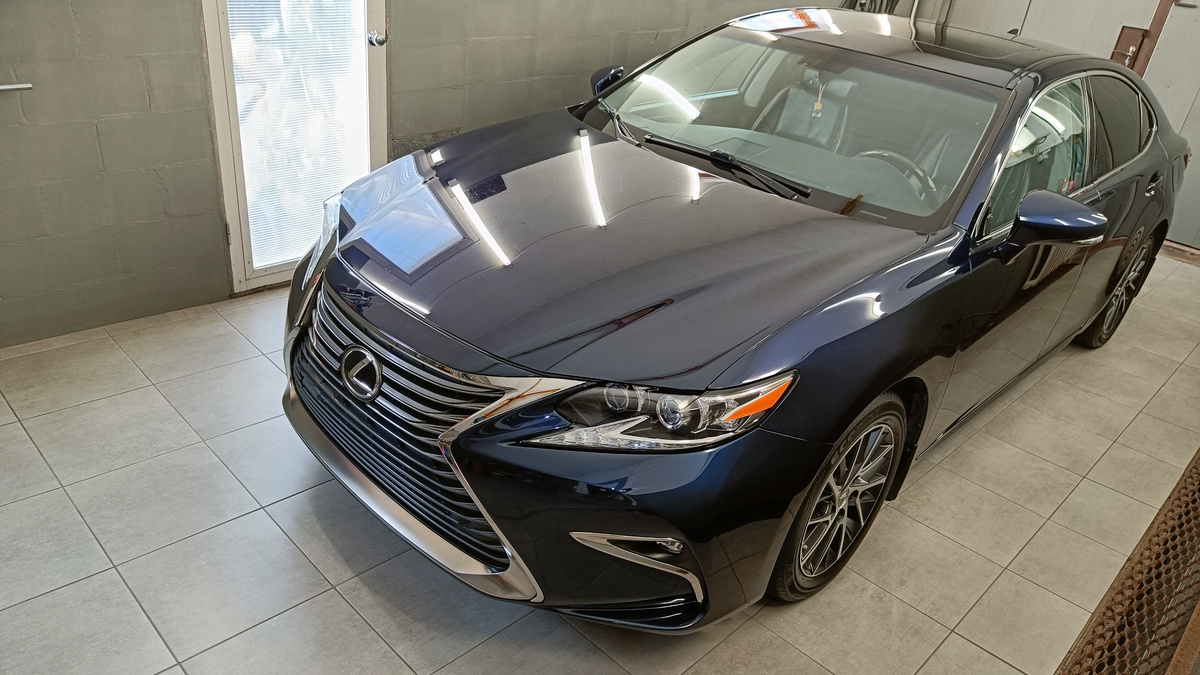 Тёмно-синий ES, за которым смотрят. У машины будет не первая полировка и не первая керамика. Тут не стоИт задача достать кузов из комы, но слова "раз" и "плюнуть" здесь не применимы. Обо всём по порядку. Слева направо: очиститель шин и дисков Fresh Wheel, две фазы по кузову: Safe и Too Shampoo, антибитум BitumOFF, айрон Iron Remover Spray, лубрикант No-Rinse и абразивный очиститель стёкол Glass Cleaner. Никого не забыл? Вроде, никого. Последовательность прежняя — колёса/арки, дверные проёмы, коврики, кузов (бесконтакт + ручной) и можно браться за химчистку. Какое-то количество битума тут нашлось. Металлических вкраплений не много, а работы для автоскраба и вовсе мизер. Старый антидождь местами жив, местами отработал. Сношу всё, будет новое покрытие. Тут видна разница между очищено/не очищено На чистом, подготовленном стекле вода лежит ровной шторой и не рябят. По проёмам и коврам зафиналю прямо сейчас, а после — погружение в полировку и защиту. Для полировки выбрана связка из Коха и