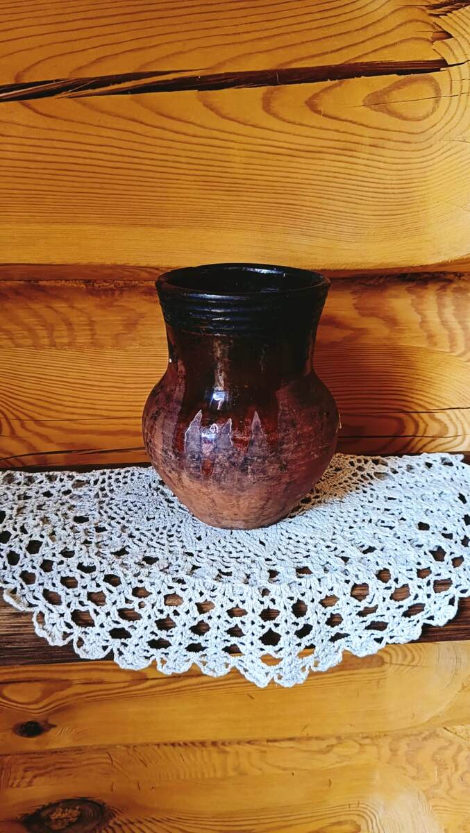 Самой распространенной домашней утварью на Руси была глиняная посуда, её изготавливали гончары из глины. После придания формы на гончарном круге и нанесения орнамента посуду сушили, а затем обжигали в специальных печах. Природный материал долго сохраняет тепло и холод, позволяя продуктам дольше не портиться. Продавали такую посуду на ярмарках и базарах, могли приобрести путём обмена на зерно. К глиняной посуде относились бережно, ведь она легко билась. Кринка (крынка) служила для хранения молока как парного, так и холодного, накрывали её сверху чистой холстинкой и убирали в холодное место. Именно в этой посуде делали и топленое молоко, ставили медленно томиться в русскую печку, молоко не пригорало и приобретало бежевый или слегка коричневый оттенок, а вкус у такого молока неповторимый. Форма кринки похожа на 2 фигуры, соединяющиеся друг с другом: цилиндр и шар. У этого сосуда высокое, широкое горло, плавно переходящее в округлое тулово, объемом 1-2 литра. Делали их с толстыми стенками