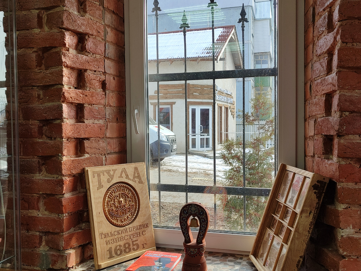 Сегодня мы идём в двухэтажный купеческий дом, где на площади в двести девяносто три квадратных метра разместились музейные залы, зал для дегустаций, где можно угоститься чаем (естественно, из тульского самовара) и купить свежеиспечённые пряники и пастилу, и помещение для мастер-классов. Предприниматель восстанавливал его практически с нуля. К слову, резные наличники были изготовлены здешними мастерами.